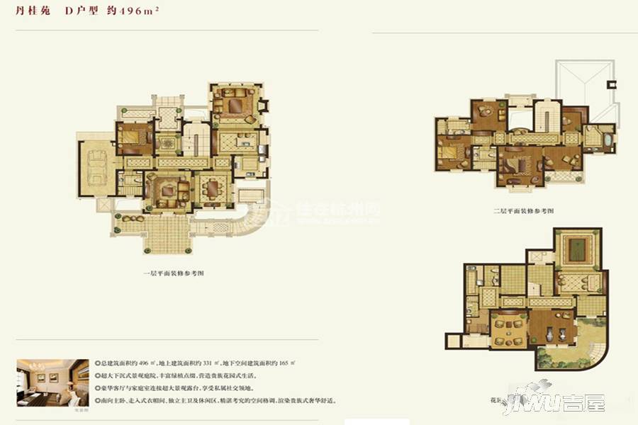 - 功能分區:地上兩層 + 地下一層,一層設客廳、餐廳與保姆房,二層雙主臥套房(帶衣帽間),地下室設紅酒窖與臺球室。
