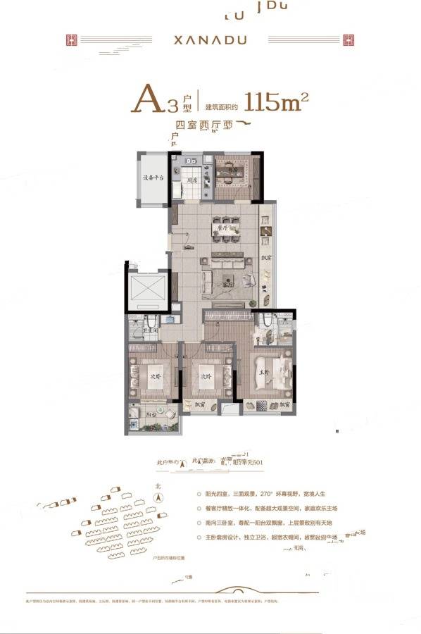 優質戶型設計:戶型多樣,有高層建筑面積約 93-115㎡戶型,以及疊排建筑面積約 143-162㎡戶型。其中 115㎡的 4 房 2 廳 2 衛戶型較為亮眼,三房朝南,約 9.3 米南向面寬,陽光充足。兩間臥室配景觀大飄窗,約 5.6 米的巨幕飄窗與大橫廳組合,空間開闊,還實現了動靜分區,居住舒適度高。